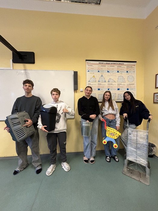 Dneska to ve škole vypadalo úplně jinak než obvykle. Batohy zůstaly doma a učebnice se vydaly na dobrodružství, jaké ještě nezažily. Bylo to součástí našich předvánočních tematických dnů. Po chodbách se projížděly kočárky, v kufrech se vezly celé hromady sešitů a na rudlíku to vypadalo, jako by někdo stěhoval celou knihovnu. Někteří přinesli učebnice v kufříku na nářadí, jiní v krabici nebo koši. Objevily se i přepravní boxy na kočky, nákupní košíky, kýble a dokonce odpadkové koše – prostě všechno, co se dalo použít. A jeden spolužák přišel s ranečkem přes rameno, jako opravdový Honza z pohádky. Nezapojili se jen žáci – i paní učitelka přišla s kabelkou, která vypadala jako utkaná z pavoučích sítí. A aby toho nebylo málo, někdo přinesl i Santův pytel, takže to chvílemi vypadalo, že se chystáme rozdávat dárky místo psaní úkolů. Byl to den plný smíchu, nápadů a předvánoční nálady. Učebnice se sice vezly v těch nejpodivnějších „aktovkách“, ale právě díky tomu jsme si připomněli, že škola může být nejen o učení, ale i o radosti a fantazii.