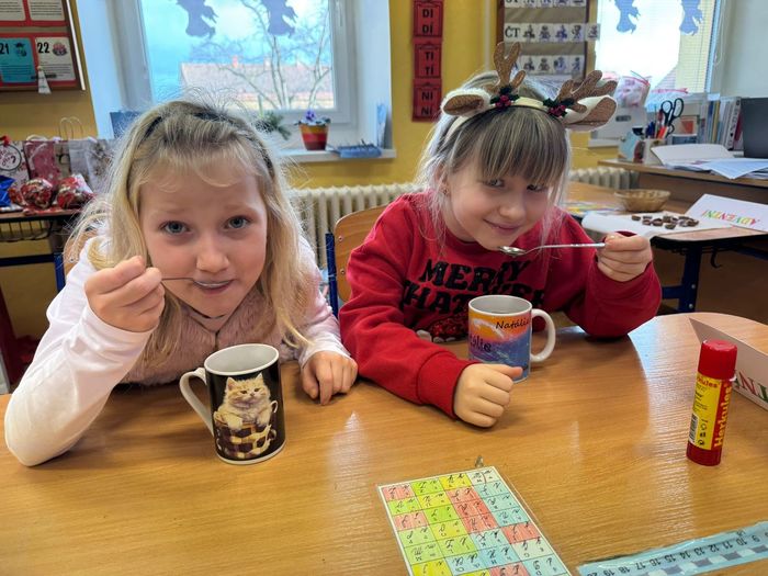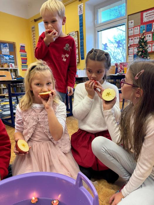 Během prosince je nejen v obrázkových příbězích navštívila sv. Barbora, sv. Mikuláš a sv. Lucie. Obrázkové příběhy děti četly, kreslily, zpívaly a adventní výzdobu vytvářely. Poslední školní den tohoto kalendářního roku si vybrané zvyky také prožily.