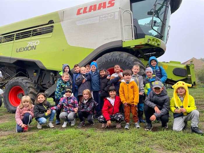 Dne 7.10. jsme s přípravnou a 2. třídou navštívili místní agrofarmu Dittrich. Měli jsme možnost navštívit chmelovou česačku a sušárnu. Děti si mohly vyzkoušet, jak se sedí v kombajnu a traktoru, nakonec nakrmily zvířata. Děkujeme panu Dörflerovi za hezkou prohlídku.