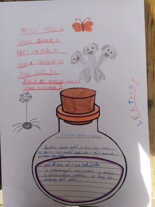 Ve čtvrté třídě jsme si minulý týden udělali krásný den čarodějnic. Nejprve děti shlédly videa o tom, jak se čarodějnice pálily dříve a jak je tomu dnes. Poté si ve skupinkách vymyslely vlastní čarodějnický lektvar. Sepsaly nejrůznější ingredience, přesný recept na výrobu a k čemu bude nápoj sloužit. Nakonec si samy zkusily takový čarodějnický lektvar uvařit.