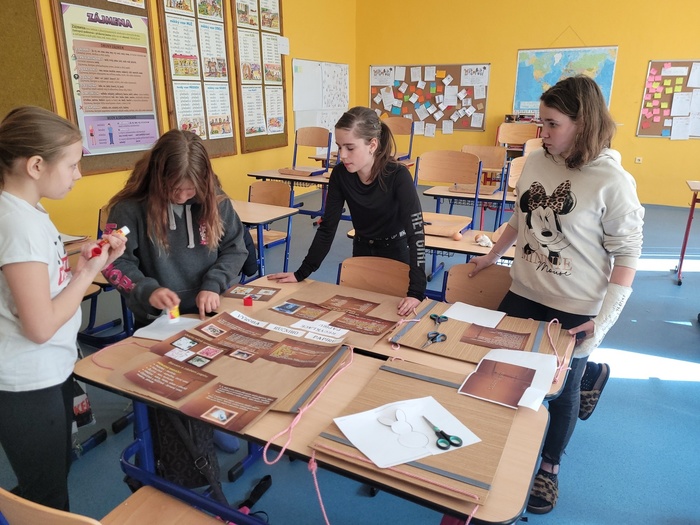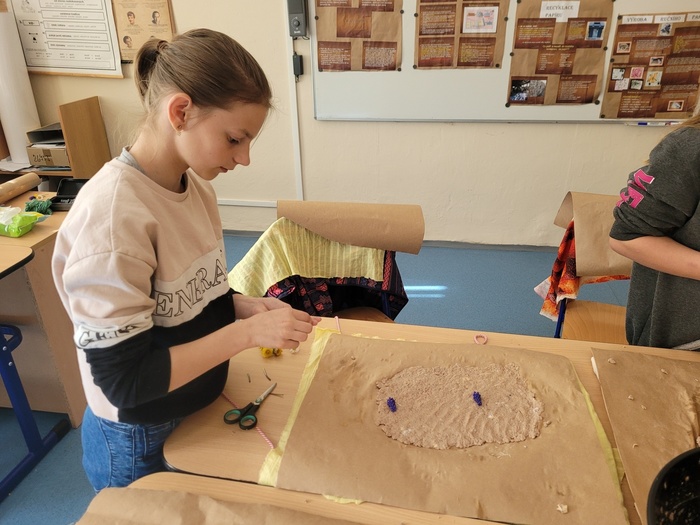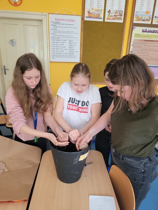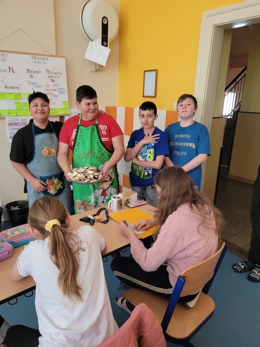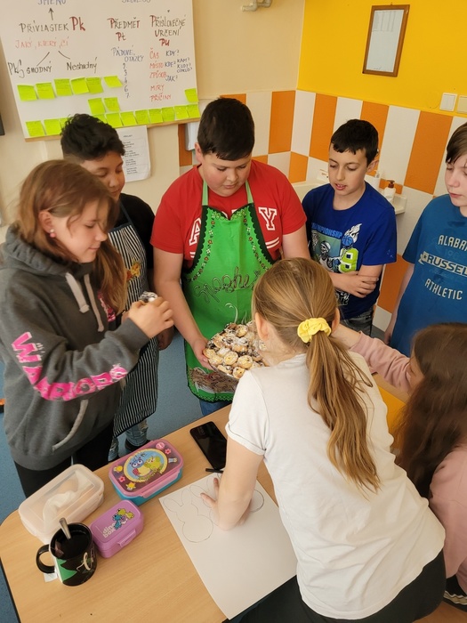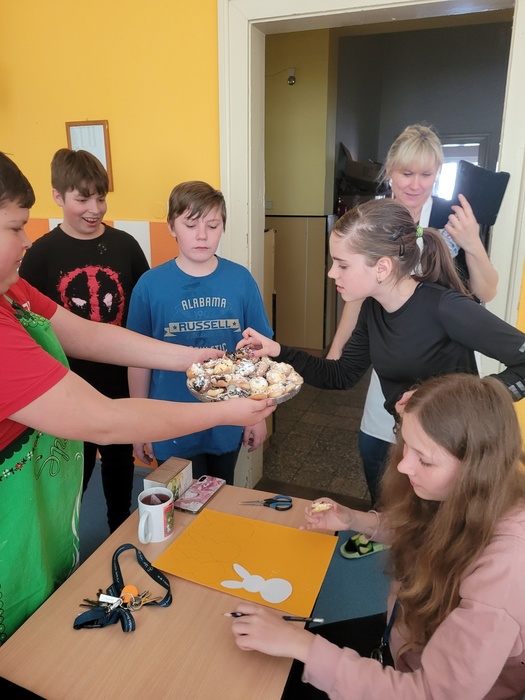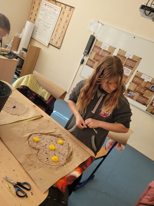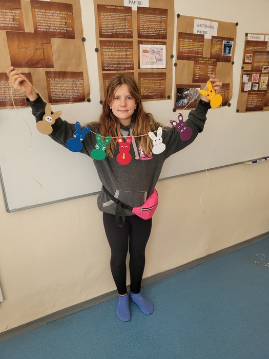 Včera se na naší škole konal projektový den ŘEMESLA. V rámci tohoto projektu si mohli žáci vyzkoušet různá řemesla v dílnách, které pro ně připravili učitelé. Naše dílna se zaměřila na PAPÍR. Papír má svou bohatou historii v různých geografických oblastech i kulturách, proto jsme s děvčaty vytvořily výukové plakáty, na kterých ukážeme ostatním žákům, jaká je historie výroby papíru, kde byl vynalezen papír, tak jak ho známe dnes, jaké se používají suroviny k výrobě, postup při výrobě a nezapomněly jsme ani na třídění a recyklaci papíru. Následně jsme se vrhly na výrobu ručního papíru. Začaly jsme již den předem najemno natrhanými kousky papíru, které jsme vložily do kýble a zalily vodou, nechaly promočit do druhého dne. V den dílen jsme takto namočený papír rozmixovaly a začaly tvarovat vlastní ruční papír dle správného postupu. Hotový vám ukážeme až po Velikonocích, nyní se nachází ve fázi schnutí. Zbyl nám čas i na výrobu z papíru. Pracovaly jsme s vlnitým barevným papírem, ze kterého jsme dle šablon vystříhaly zajíčky a odnesly si  domů velikonoční výzdobu. V dílnách panovala skvělá atmosféra umocněná překvapením, když nám kuchaři a pekaři přinesli ochutnat jejich houstičky a koláčky….mňam, mňam, mňam.