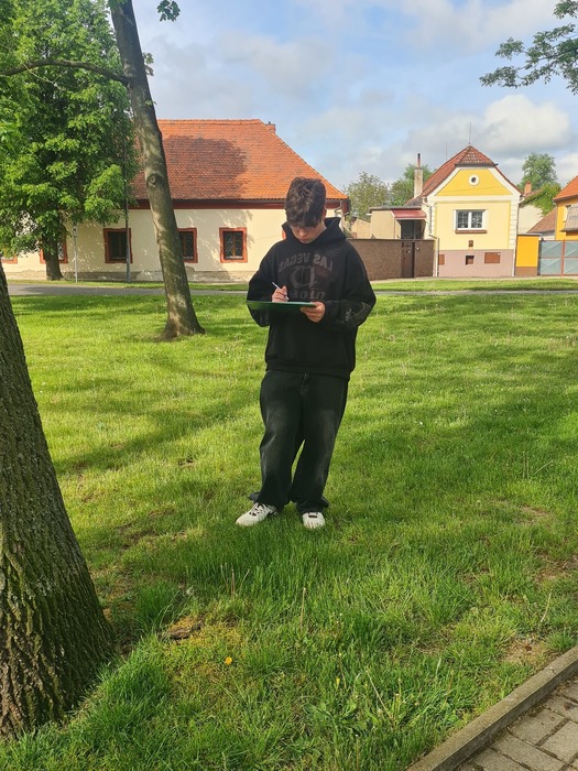 Zaujmout žáky 9. ročníku v květnu? Upřímně – disciplína hodná olympijských výkonů. Když už deváťáci myslí spíš na prázdniny a všelijaké prázdninové lumpárny, přicházím já - učitelka češtiny… a navrhuji, že si dnes uděláme gramatiku venku. Správně – venku! Vyrazili jsme tedy do parčíku na návsi ozbrojeni pracovním materiálem s názvem Křováci (ne, vážně jsme se neschovávali do křoví – i když někteří jedinci by to zřejmě uvítali). Materiál obsahoval dva texty a s nimi spojených 16 úkolů – po osmi ke každému textu. A jelikož víme, že pohyb podporuje myšlení, rozmístili jsme stanoviště po celém parku. Deváťáci tak brázdili trávník sem a tam, v jedné ruce pracovní list, v druhé tužku a na rtech (většinou ☺) úsměv. Trénovali jsme mluvnické dovednosti všeho druhu – od hledání všech tvarů slovesa být, přes psaní velkých písmen, určování větných členů až po číslovky, zkrátka všechno, co by deváťák měl zvládnout bez výrazného červenání. To jediné, co jim zčervenalo, byly tváře, a to díky svěžímu, trochu chladnějšímu, vzduchu a jemnému jarnímu vánku. Prstíky sice občas ztuhly (český jazyk v polních podmínkách není jen tak), ale o to víc jim pak chutnala svačina, která následovala hned po akci. Většina žáků pracovala samostatně a soustředěně, přecházela od úkolu k úkolu, jako by je hledání základních skladebních dvojic doopravdy bavilo ☺. A když se někdo zkusil přiživit na odpovědích šikovnějších spolužáků? No, i to je forma komunikace a důkaz, že sociální dovednosti jim rozhodně nechybí. Zkrátka – byla to hodina češtiny trochu jinak. S cvrkotem ptáků nad hlavami, zelení pod nohama, od větru rozcuchanými vlasy a nádechem dobrodružství. A i kdyby si žáci z dneška zapamatovali jen to, že se být píše s tvrdým y – i to se počítá. My se totiž nevzdáváme a češtinu si umíme udělat zábavnou. I v květnu. I venku. I s úsměvem.