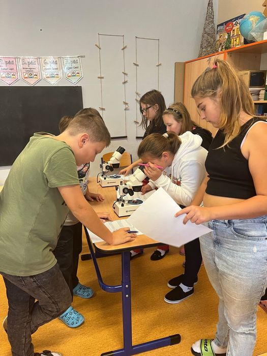 Další zážitková hodina proběhla v 5. třídě. Žáci zkoumali horniny obsahující kovy, pozorovali s pomocí elektronické lupy a podle popisu se pokusili odhadnout druhy nerostů. Na závěr viděli pokus, jak hoří hořčík.