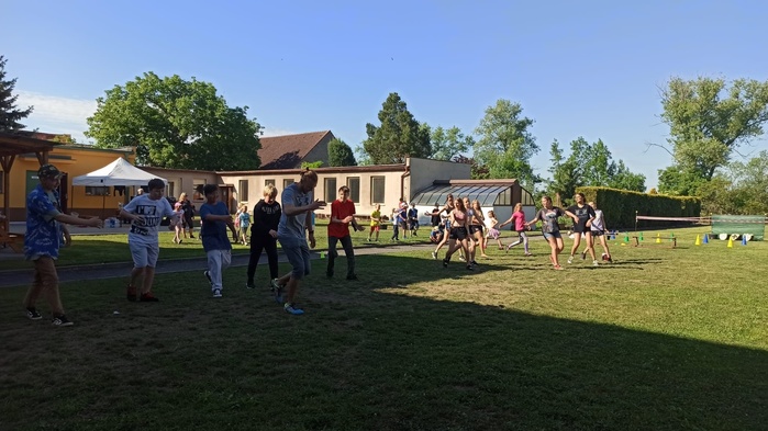 Ve středu 1. 6. žáci šesté třídy pro přípravku a prvňáčky připravili dopoledne plné soutěží, her a zábavy. Děti nejdříve plnily zadané sportovní disciplíny, následně z audionahrávek hádaly pohádky, a nakonec je čekala vodní bitva. Dopoledne proběhlo ve velmi příjemném a pohodovém duchu, děti byly nadšené. Na závěr si mohly opéct vuřty.