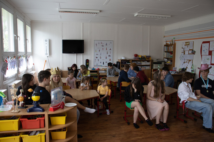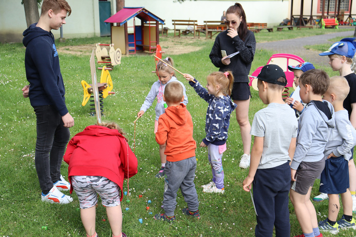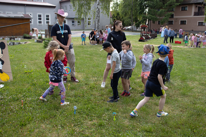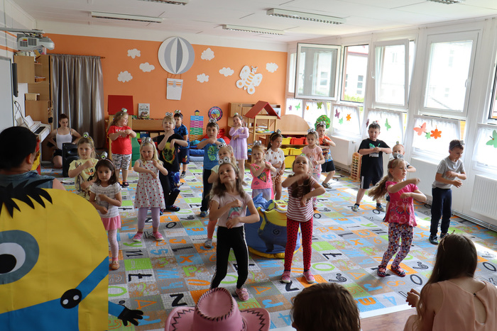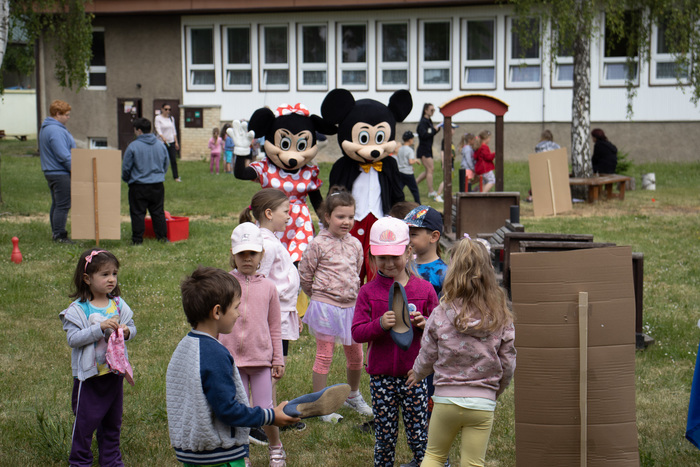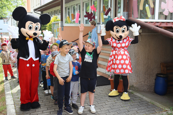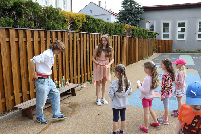 Minulý týden 9. třída uspořádala dětský den pro mateřskou školu plný zábavy a radosti. Pohádka Mickeyho klubík byla hlavním tématem, a tak se děti mohly setkat s oblíbenými postavami. Děti se zapojily do různých aktivit jako například střílení z vodní pistole, chytání rybiček, házení popelčiným střevíčkem a mnoho dalších.