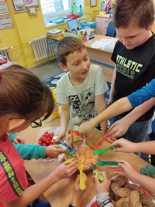Ukázkami a ochutnávkou výtvorů vyvrcholil v pátek týden Zdravé výživy, který probíhal na 1.stupni a ve kterém se děti různou formou seznamovaly se zdravou výživou a zdravým životním stylem. K ochutnávce přinesly zdravé svačinky, pomazánky, smoothies a dokonce předvedly, že i mlsat se dá zdravě. Hlavní roli sehrálo např. avokádo, mrkev, cuketa, jogurt, vejce…..