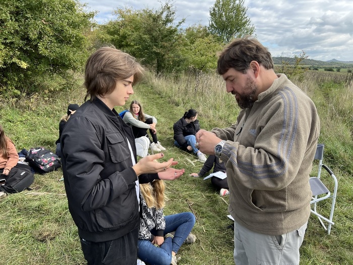 Dne 21.9. jsme pro 7. a 9. třídu naplánovali přírodovědnou exkurzi na Písečný vrch u Břvan. Povedlo se nám zajistit kolegy z lounské muzea - geologa pana Janečka a zoologa pana Bažanta, kteří nás seznámili se svou prací a s přírodou Písečného vrchu.