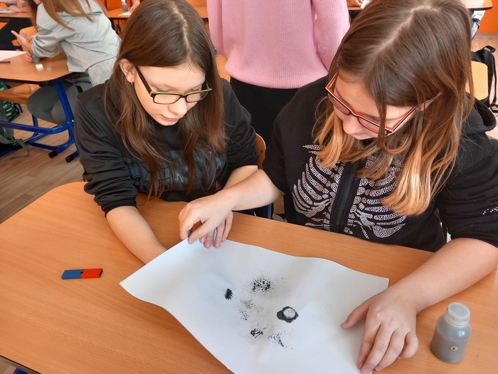 Žáci v 6. třídě probírají magnetické vlastnosti látek. Dostali jsme se k indukčním čarám, které jsou pomyslné čáry kolem magnetu, kterými znázorňujeme silové působení magnetického pole. Žáci mají většinou problém se slovem "pomyslné", že je nevidí a tak bylo na čase žáky přesvědčit, že existují. Hodina byla úžasná a všechny to moc bavilo.