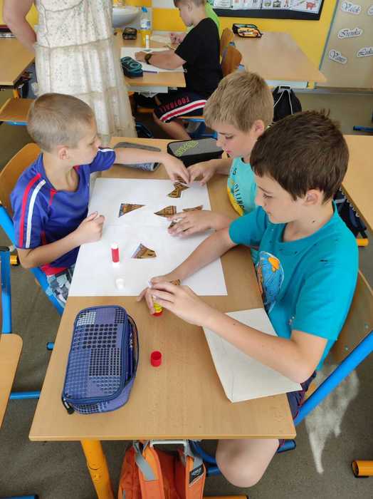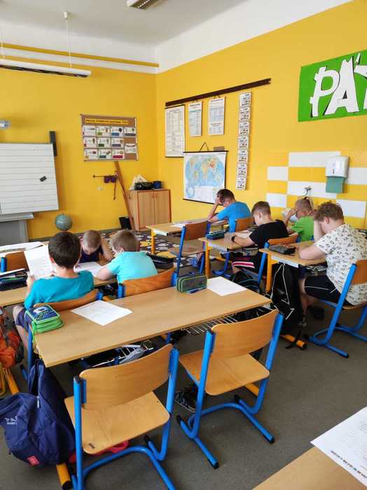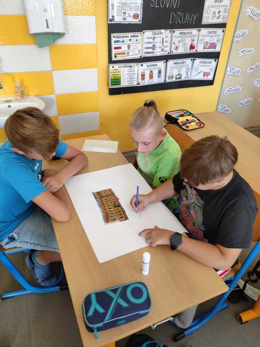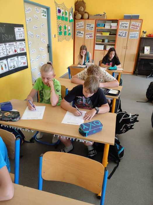Ve čtvrtek 23.6. proběhl v 5. třídě celodenní projekt Jak se mi žilo na 1. stupni. Děti skládaly obrázek školní budovy a okolo uváděly, co je při pohledu na důvěrně známou budovu napadá. Poté skládali slova z písmen NAŠE ŠKOLA a vybíraly to, které mají se školou nějakým způsobem spojené. Při čtení příběhu Pipi jde do školy nás pobavilo Pipino tykání paní učitelce nebo její urputná snaha domoci se spravedlnosti ohledně školních prázdnin. Hlavním úkolem projektu však bylo napsat, jak se dětem na 1. stupni žilo. Někdo vzpomínal na školu v přírodě, další na školní výlety, nejčastějším tématem byl ale covid – pro někoho 2 roky prázdnin, pro jiné online hodiny a spousta práce doma. Projekt se nám moc povedl a já přeji dětem, ať se jim na 2. stupni daří.