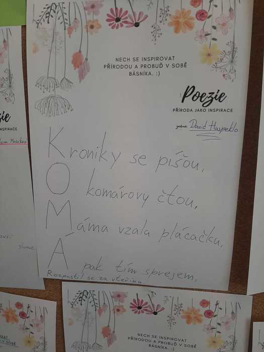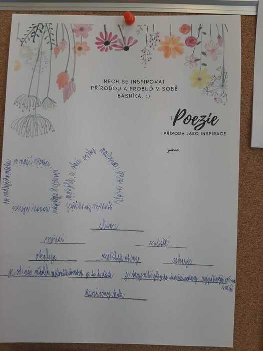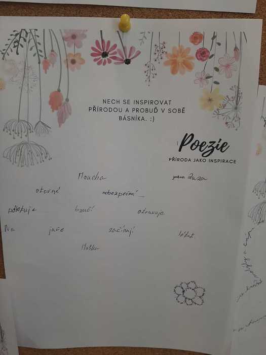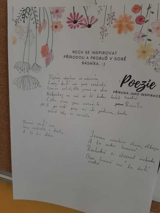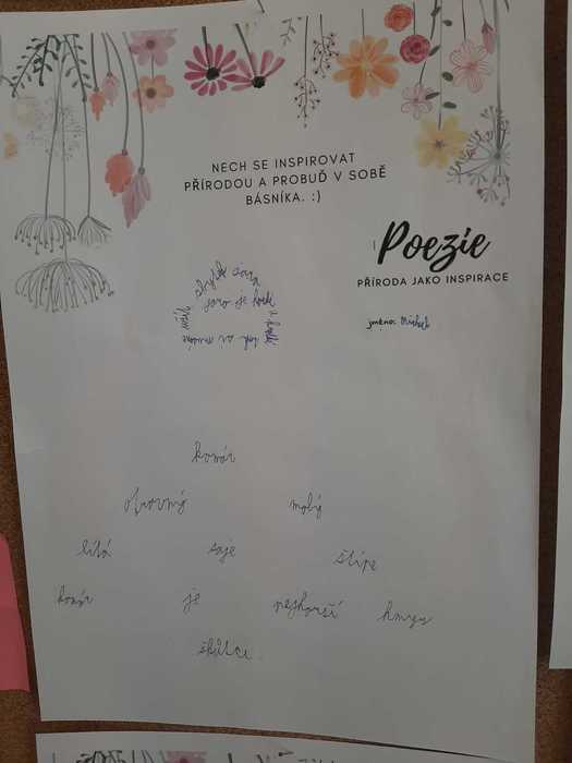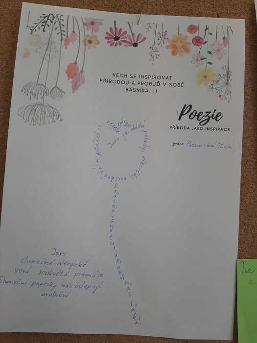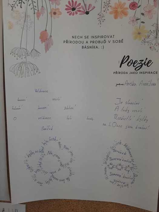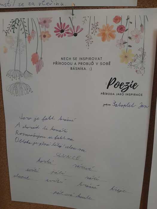 K jarní náladě přispěla v 7. třídě i „Chvilka vlastní poezie“. Žáci si mohli vybrat, co budou tvořit: