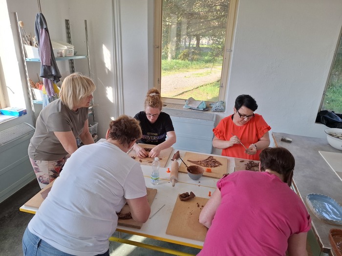 Naše oblíbená keramická dílna pro veřejnost má další pokračování. Tentokrát se tvořilo v jarním duchu – vyráběly se keramické věnce, které budou krásnou dekorací nejen na dveře.
