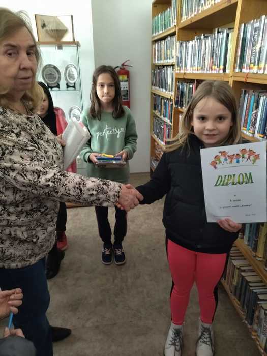 V březnu proběhlo v místní knihovně vyhodnocení nejlepších výtvarných prací na téma Komiks. Zúčastnila se většina žáků naší školy. Paní Chovancová se svým kolektivem vybrala povedená komiksová ztvárnění, která měla zajímavý příběh.