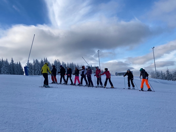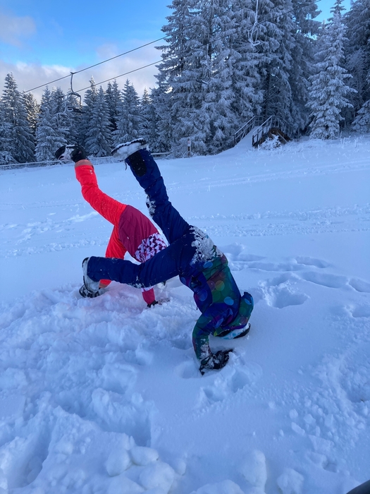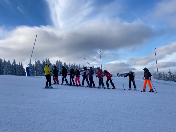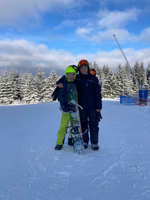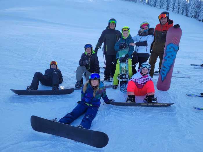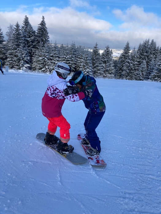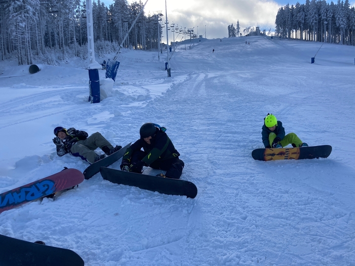 Dnes jsme vyměnili včerejší sjezdovku na NOWAKU za sjezdovku na Plešivci. Rozdíl na první pohled veliký, hlavně pro nás, kteří stojíme na lyžích i snowboardu poprvé. To, že se někdo odhodlá odjet na lyžařský výcvik znamená, že určitě bude muset překonávat sám sebe i se posunout za hranici svého komfortu. Není až tak jednoduché nazout přeskáče, zapnout a dojít v nich třeba úsek k lanovce. Zrovna tak není lehké zvládnout ovládat těžké boty i lyže, nebo si zvyknout na připoutané obě nohy ke snowboardu. Ale krůček po krůčku si zvykáme a snažíme se odstraňovat strach a obavy, a naopak si jízdu a pohyb na sněhu užívat. Někdy se dostaví i slzy, ale to k tomu patří. Žádný učený z nebe nespadl a snaha se cení nejvíce. A o to jde. Udělali jsme krůček pokrok a zítra se budeme těšit znova. Představte si krásně upravenou sjezdovku, na které jsme skoro sami a k tomu ještě vykoukne slunce.