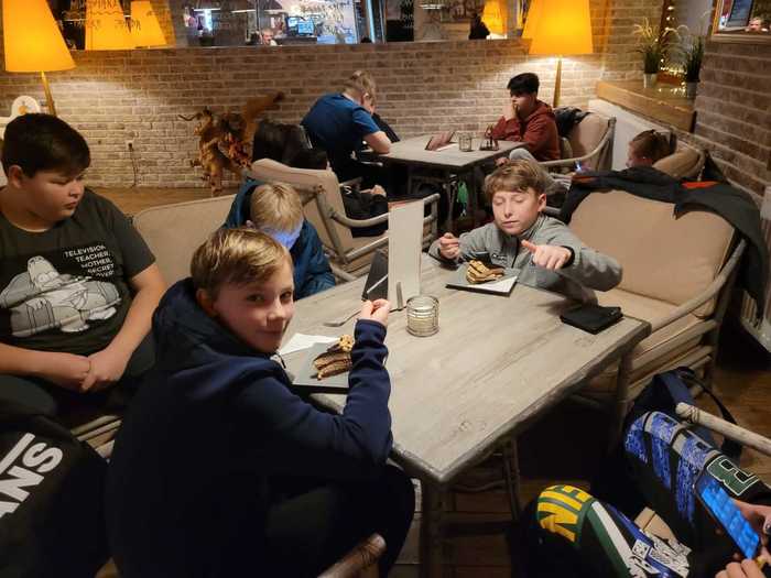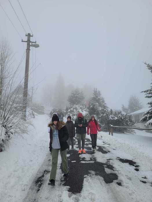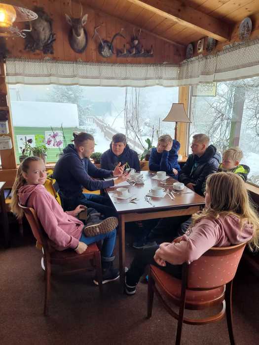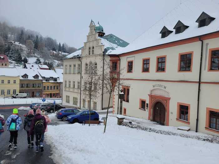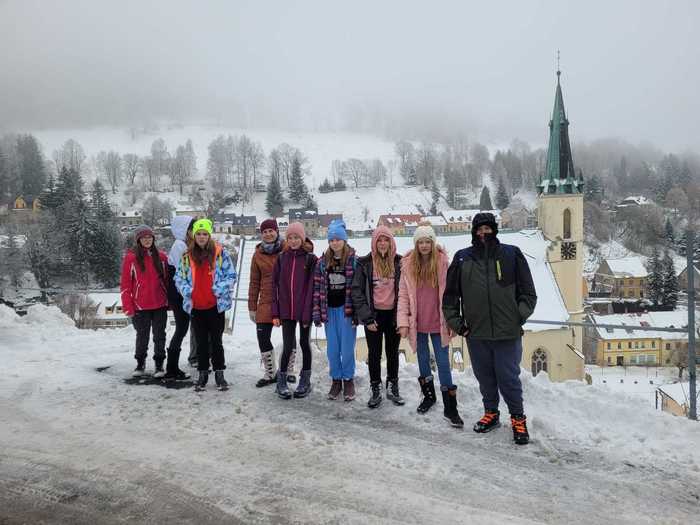 Výcvikový kurz se docela rychlými kroky přehoupl do svojí druhé poloviny. Dnešek byl ve znamení relaxace a načerpání nových sil. Ráno prodloužený budíček i snídaně. Následovala teoretická výuka lyžování i snowboardování s praktickými ukázkami na videu. Před obědem ještě oddych při týmovém psaní povídky z hor a po obědě turistický výšlap do Jáchymova a tamního lázeňského a saunového světa, kde jsme pobyli tři hodiny a opravdu se krásně zregenerovali. Bylo to moc fajn. Zpátky na Nové město nás vyvezl večerní autobus. Dokonce se skupina našich deváťáků rozhodla jít i zpátky pěšky. Patřila jim za to na večerní schůzce pochvala. Povídky z hor, které dopoledne sepsaly jednotlivé týmy byly přečteny a některé odměněny potleskem. Večerka jako obvykle, protože zítra nás čeká další práce na svahu. Přejeme dobrou noc do údolí.