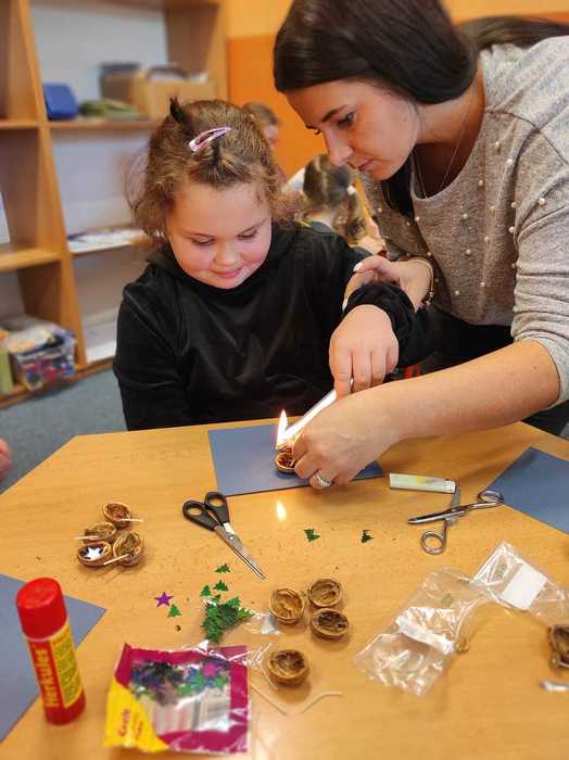 S Vánocemi je spjato mnoho zvyků a tradic, mezi něž se řadí i pouštění lodiček ze skořápek vlašských ořechů. Podle tradice plavba lodičky se zapálenými svíčkami dokáže předpovědět naši budoucnost. A tak jsme s dětmi ve školní družině lodičky vyrobili.