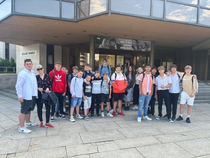 Včera se osmá a sedmá třída vydala na divadelní představení Lotrando a Zubejda do Mostu.
