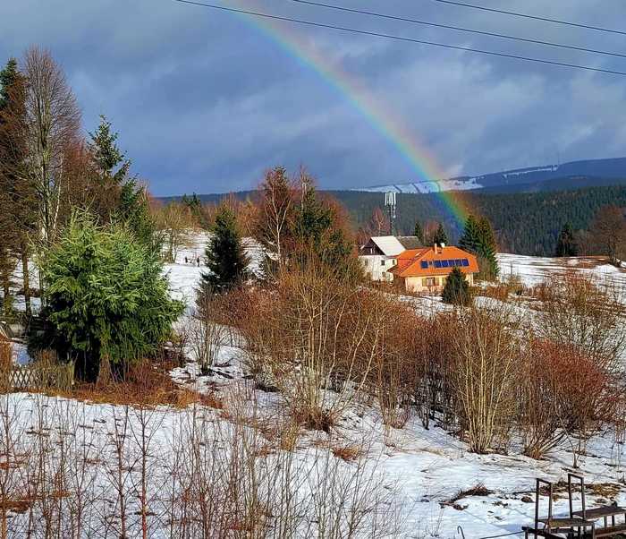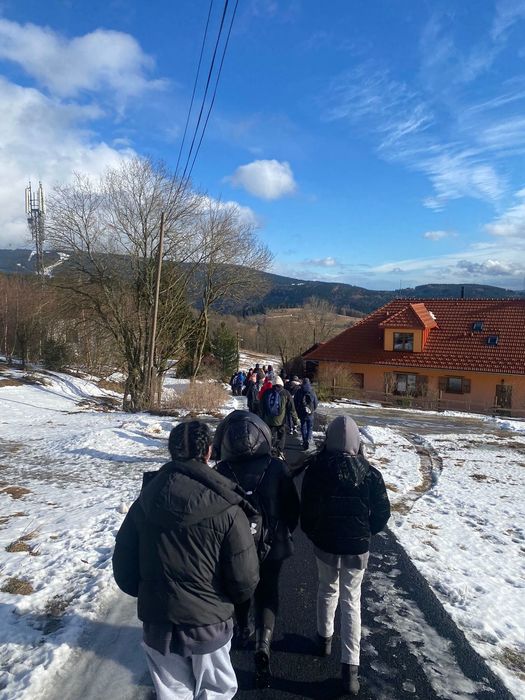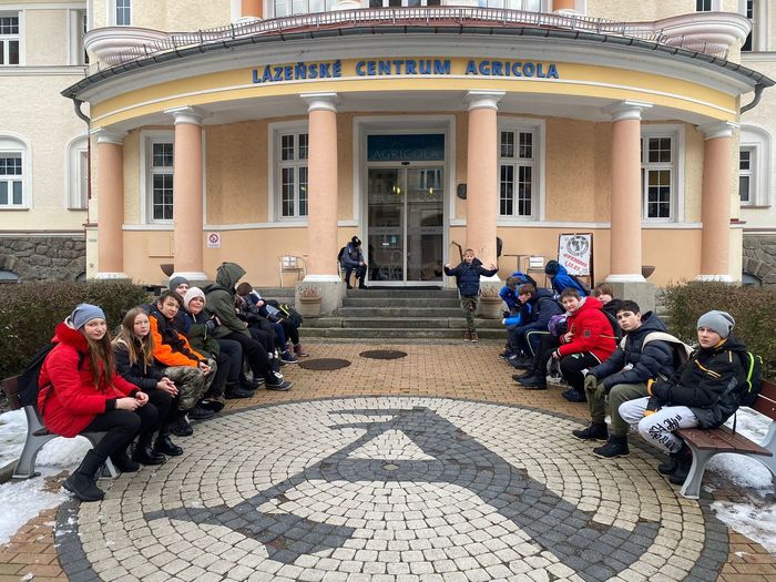 Pohled z okna chaty PAM je jako z obrázku pana Lady. Venku zpívá Meluzína, horská chatička se chvěje zimou. Cestou na snídani padáme jako hrušky, ale ŠTĚSTÍ číslo jedna je, že se nám nic nestalo. Snídaně servírovaná švédským stylem, naše oči vidí párek a vajíčka na hniličku. Máme ŠTĚSTÍ číslo dvě, protože zrovna jsme si mezi sebou říkali, že na to máme chuť. Po třech dnech výcviku na svazích Krušných hor máme odpočinkový den. ŠTĚSTÍ číslo tři pro toho, kdo si od lyží rád oddechne. Po vydatné snídani se pokoušíme udělat pořádek ve svých věcech a rozehrát první kola soutěže v PIŠKVORKÁCH. Poobědváme a vyrážíme dolů do Jáchymova vyplavat unavené svaly. Cesta dolů připomíná ledovou bobovou dráhu a naše nohy jsou boby, které se bezpečně klouzají dolů, a je tu ŠTĚSTÍ číslo čtyři, všichni zdárně dokloužeme do horního Jáchymova. Rozdělujeme se na dvě partičky, jedna plavací, druhá ťapací. Plavací chvátá do Agricoly, aby dokázala zakoupit vstupenky v čase před čtrnáctou hodinou, které jsou o docela dost levnější. Pecka, máme ŠTĚSTÍ číslo pět, zvládli jsme levnější variantu a hurá do bazénu. Druhá část výpravy už se těší na oblíbenou cukrárnu, kde na ně čeká spousta dobrot. ŠTĚSTÍ číslo šest je pochutnat si na něčem dobrém. A poslední ŠTĚSTÍ číslo sedm máme vlastně my všichni, kterým bylo umožněno odjet na lyžařský a snowboardový výcvikový kurz a prožít dobrodružství na horách. ŠTĚSTÍ, každý z nás ten pocit určitě zažil. Aby nám něco z takových okamžiků zbylo je důležité, abychom si to štěstí zaprvé uvědomili, a zadruhé uložili do paměti.