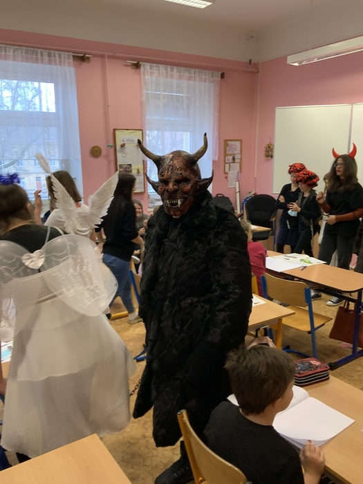Dne 6. 12. slavíme svátek svatého Mikuláše a ač by se mohlo zdát, že toto sváteční pondělí bude klidné, opak byl pravdou. Do tříd na prvním stupni dorazil Mikuláš i se svým bohatým doprovodem. Po jeho boku se to čertilo jako v pekle a o pekelnou zábavu bylo postaráno. I přesto, že někteří žáci měli do pekla nakročeno, žádného si čerti do pekla nakonec neodnesli. Ve třídách zaznívaly od žáků básničky a písničky. Naši andělé obdarovali vzorné žáky drobnou sladkostí a ti méně poslušní dostali od čerta uhlí. Akci pořádali žáci 6. třídy, kterým patří velké poděkování.