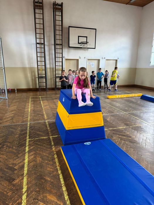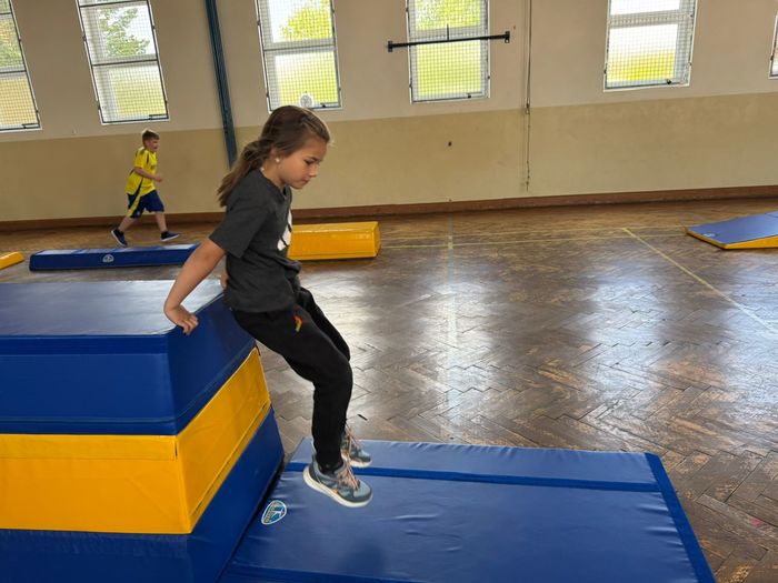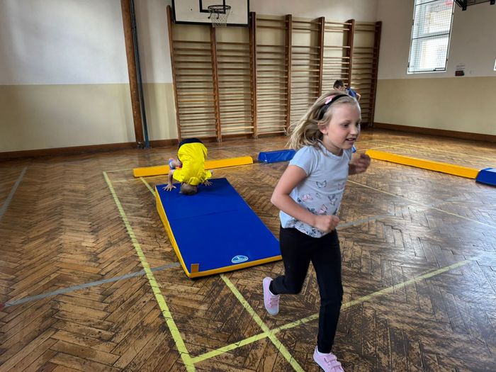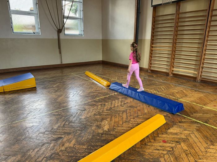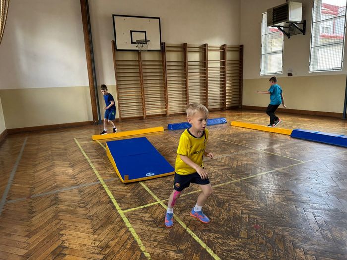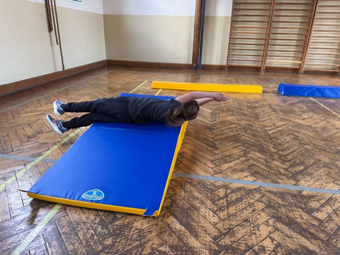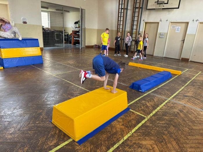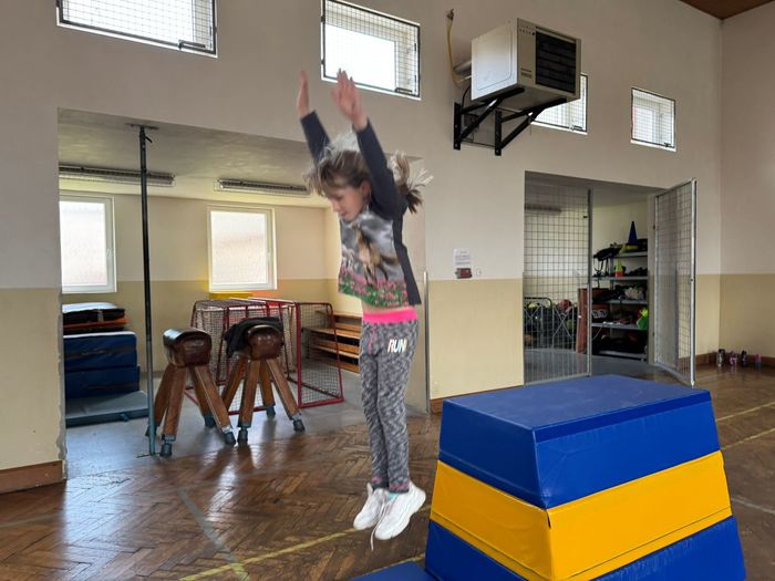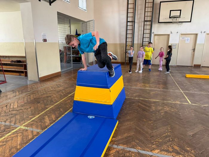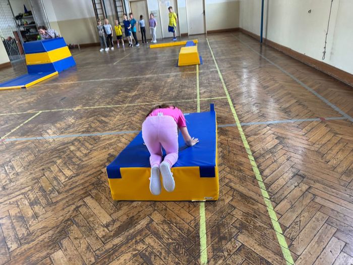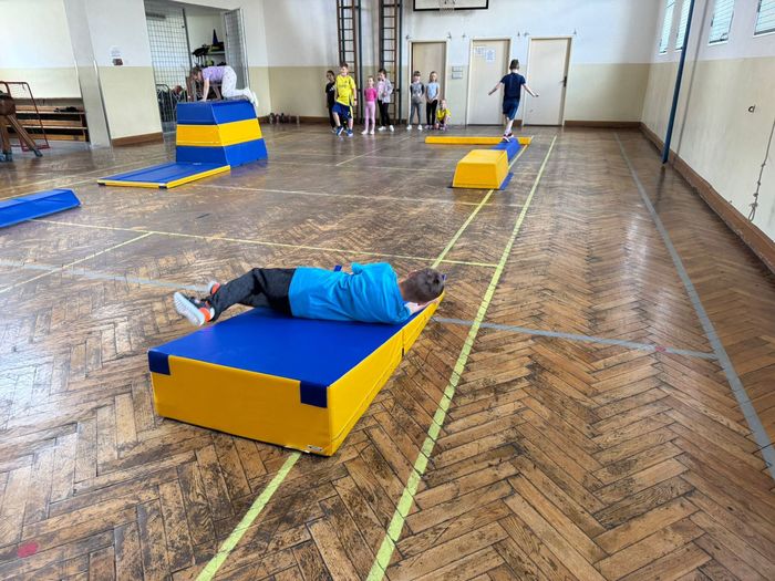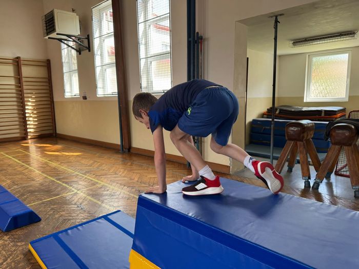 Druháci dnes set využili k postavení překážkové dráhy. Při překonávání překážek zdokonalovali odrazy, výskoky, seskoky, rovnováhu, posilovali střed těla, nacvičovali kotouly.