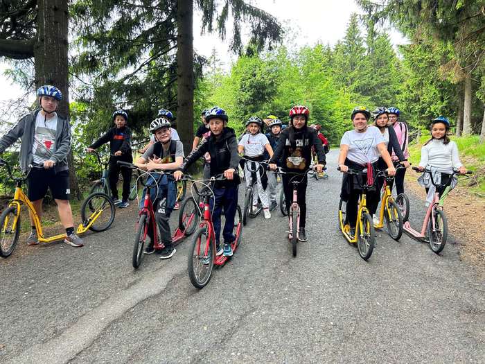V týdnu od 12. do 16. června jsme s dětmi z páté třídy vyjeli na dlouho plánovaný a očekávaný pobyt do Jizerských hor. Strávili jsme pět společných dnů v Josefově Dole, kde jsme si užívali krásné přírody. Děti stavěly stavby v lese, hrály netradiční týmové hry, vyšláply si na rozhlednu Slovanka a obešly Josefodolskou přehradu. Navštívili jsme Dinopark v Liberci, večer tančili na diskotéce a v noci jsme se báli jsme na stezce odvahy. Největším lákadlem byla jízda na terénních koloběžkách, kterou všichni zvládly na jedničku. Celý pobyt proběhl v bezvadném týmovém duchu a děti se vrátily domů spokojené a plné zážitků.