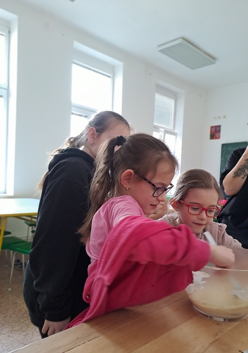 Děti se rozdělily do skupin. Seznámily se s recepty a společně si vysvětlily postup.