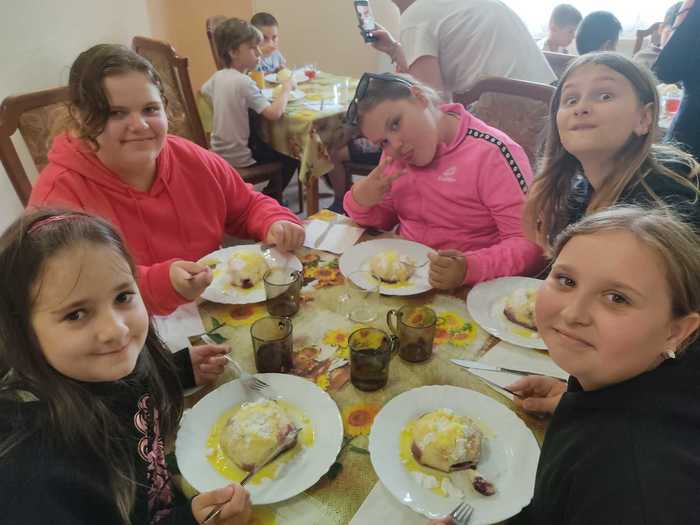 Posíláme veselý pozdrav všem z našeho ozdravného pobytu. Bydlíme v malém penzionu, kde skvěle vaří! S plnými bříšky chodíme na dlouhé vycházky nebo si hrajeme na sportovním hřišti. Dnes s námi šli z vycházky dva psi. Pojmenovali jsme je Maxík 1 a Maxík 2, doprovodili nás až k penzionu, pak zvesela odběhli. Počasí nám zatím přeje a moc se nám tady líbí.