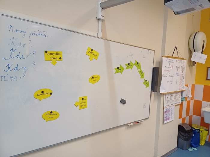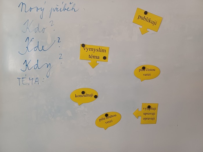 Šesťáci pracují každý týden na svém příběhu. Učí se jak zamotat zápletku, použít přímou řeč, vytvořit odstavce a mnoho dalšího. Důležitou součástí je i posadit se do křesla pro autora a svůj text přečíst.