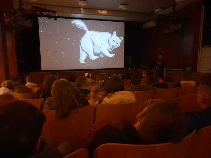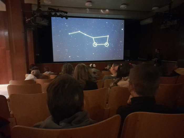 Projekce probíhala v Městské knihovně města Most, protože vlastní Planetárium je v rekonstrukci. Přesto byl pořad byl velmi zajímavý a děti upoutal. Velmi vtipné a nápadité bylo porovnávání vzdáleností planet od Slunce s různými budovami světa.