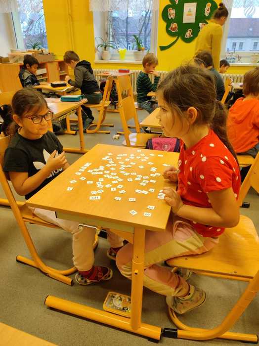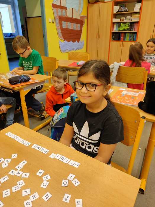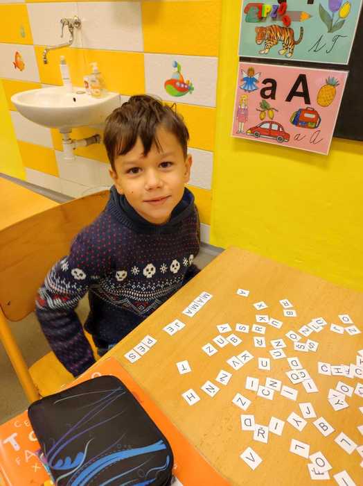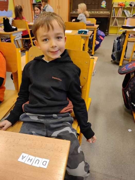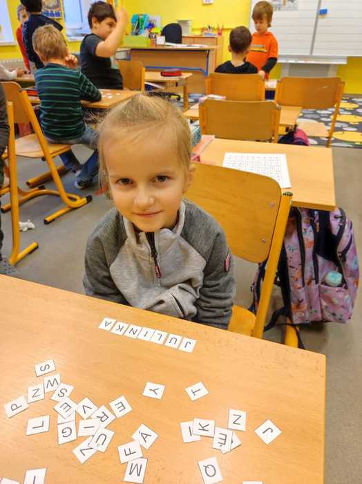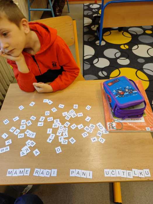 Už téměř tři měsíce chodí prvňáčci do školy. Za tu dobu se již naučili spoustu věcí. Číst krátké texty, sčítat a porovnávat čísla do pěti, zpívat nové písničky a mnoho dalších dovedností. Tento týden jsme začali skládat z písmenek slova a věty. Děti pracovaly ve dvojicích, nejprve podle diktátu. Na závěr dostaly volnou ruku a mohly skládat podle svého. Jejich výtvory mě překvapily, dojaly a některé velmi pobavily.