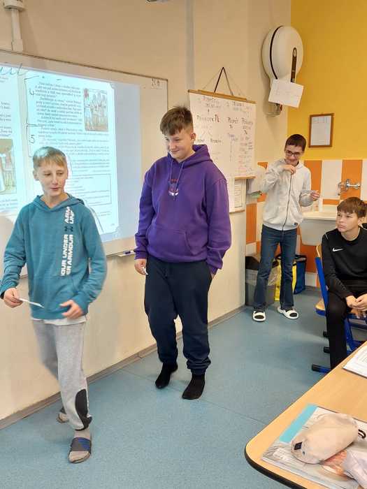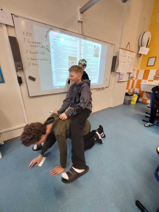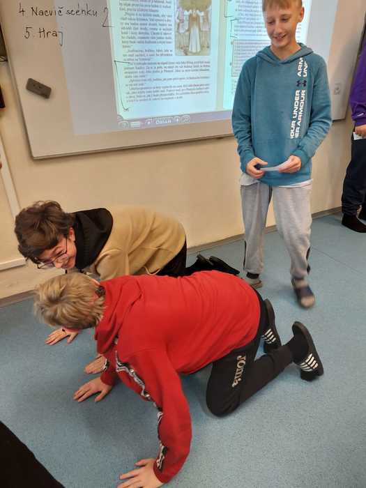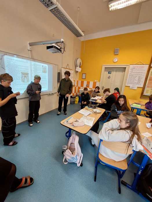 Žáci 7. třídy si na hodině českého jazyka připravili dramatizaci známé pověsti O Libuši a Přemyslovi. V první části hodiny se rozdělili do skupin, kde každý tým zpracoval určitý úsek příběhu. Poté, co si své výstupy připravili, postupně předvedli scénky, které ztvárnily různé okamžiky pověsti. Vrcholem celého vystoupení byl závěr, kdy všechny skupiny společně přivítaly Přemysla na bílém koni, což dodalo dramatizaci slavnostní atmosféru a příběh krásně uzavřelo.