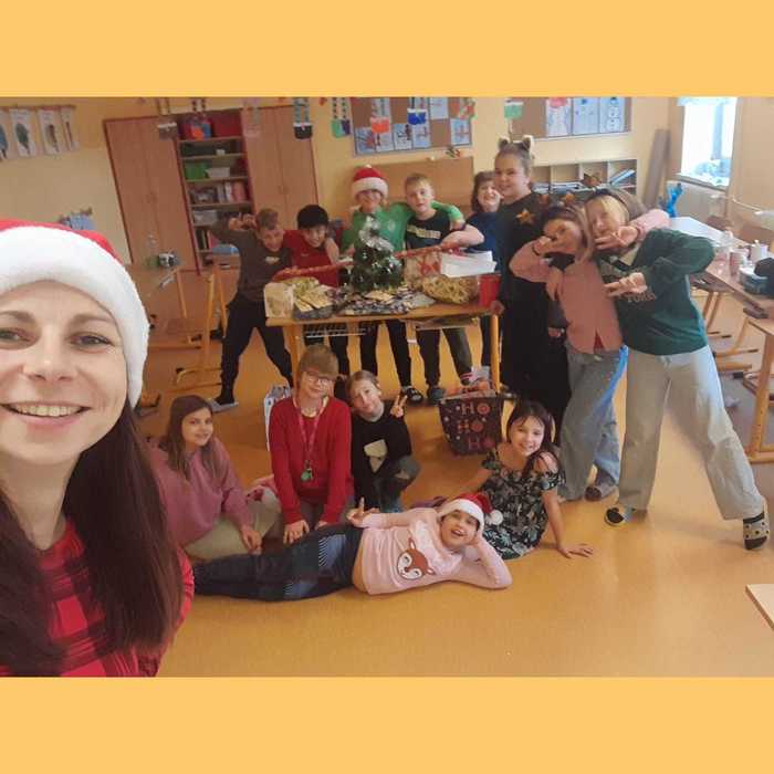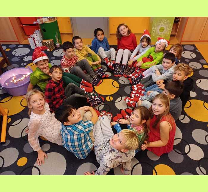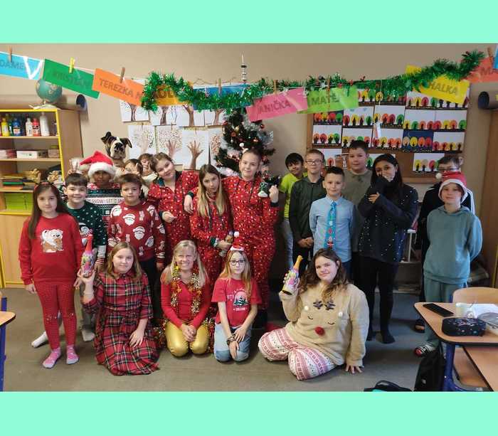 Poslední pátek před vánocemi je čas školních besídek, zpívání koled a rozdávání drobných dárků. V tento den jsme se všichni oblékli do vánočních barev – červené, zlaté a zelené. Někdo měl vánoční pyžamko, někdo svetr nebo šaty, ale určitě to slušelo všem.