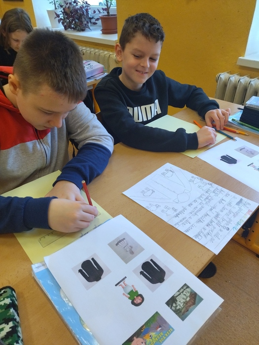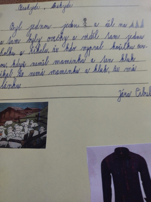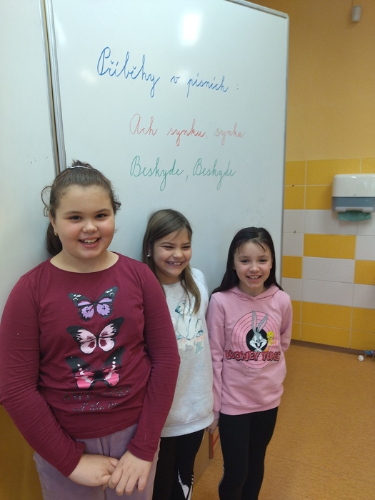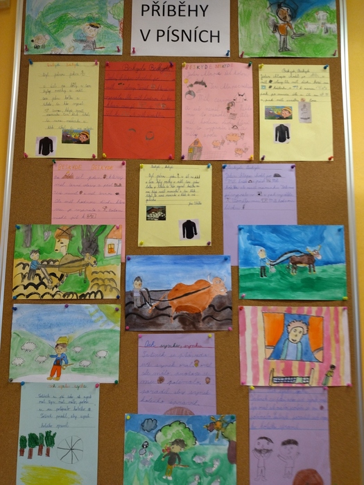 V hodinách hudební výchovy se žáci naučili zpívat dvě české lidové písně se zajímavým příběhem. Povídáním si rozebrali části příběhu v těchto písních a vytvořili si osnovu. Děj si připomenuli i obrázky. Uvědomili si části příběhu písně-začátek, prostředek, konec. Příběh napsali nanečisto, poté přepsali a doplnili obrázky z písně. Vzniklo jim tak obrázkové psaní. Nakonec promysleli myšlenku písně, proč asi vznikla. Ve výtvarné výchově nakreslili k písním obrázek.