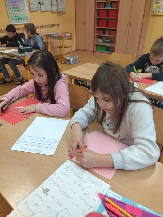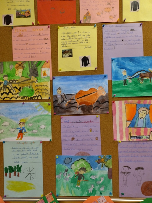 V hodinách hudební výchovy se žáci naučili zpívat dvě české lidové písně se zajímavým příběhem. Povídáním si rozebrali části příběhu v těchto písních a vytvořili si osnovu. Děj si připomenuli i obrázky. Uvědomili si části příběhu písně-začátek, prostředek, konec. Příběh napsali nanečisto, poté přepsali a doplnili obrázky z písně. Vzniklo jim tak obrázkové psaní. Nakonec promysleli myšlenku písně, proč asi vznikla. Ve výtvarné výchově nakreslili k písním obrázek.