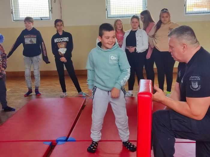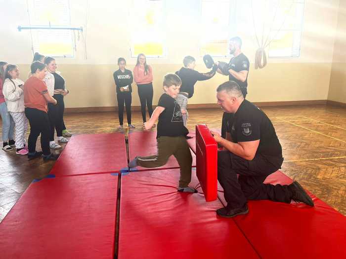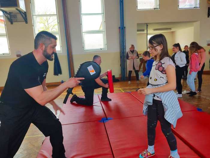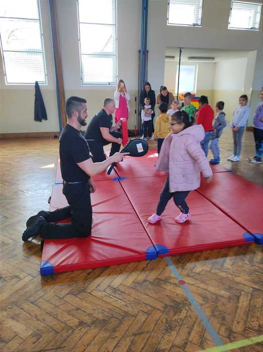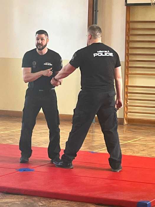 Dne 27.4. nás navštívil ředitel městské Policie Postoloprty Roman Kaleja. Spolu se svým kolegou nám představil policejní výstroj a výzbroj. Poté následovala ukázka bojového umění. Děti se zapojily a vyzkoušely si několik prvků sebeobrany.