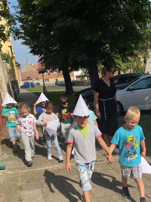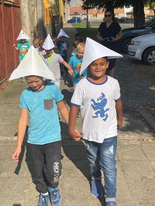 Děti z přípravky  si dnes vyrobily papírové  čepičky, naučily se písničku a  šly se představit dětem do všech tříd  a nezapomněly ani na paní ředitelku. ????