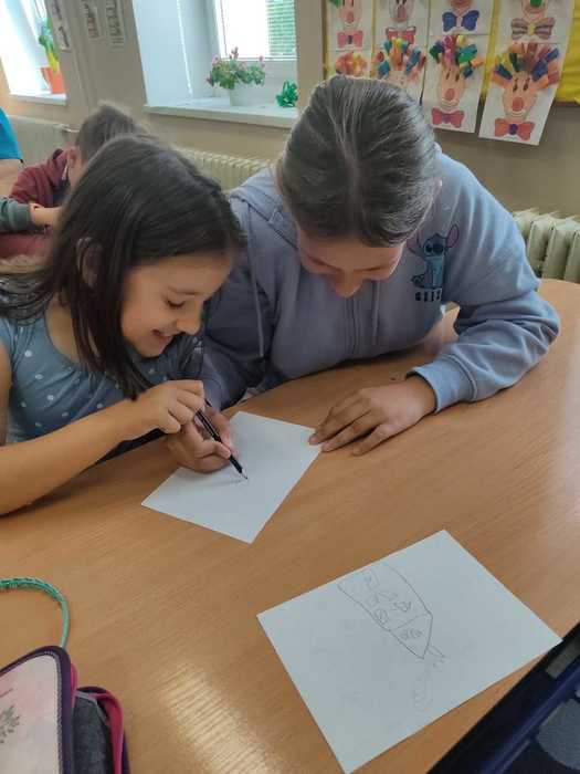 Ve 3. třídě proběhl minulý týden projekt, ve kterém se děti seznámily s různými způsoby komunikace. Zjistily, že spolu mohou mluvit beze slov, třeba pomocí gest, že podle výrazu ve tváři se dá poznat, zda je druhý smutný, veselý nebo rozzlobený a že by bylo fajn, kdyby se všichni lidé na světě dokázali domluvit po dobrém. Scénky, různé aktivity, rozhovory a kreslení ve dvojicích děti velmi zaujalo a bavilo.