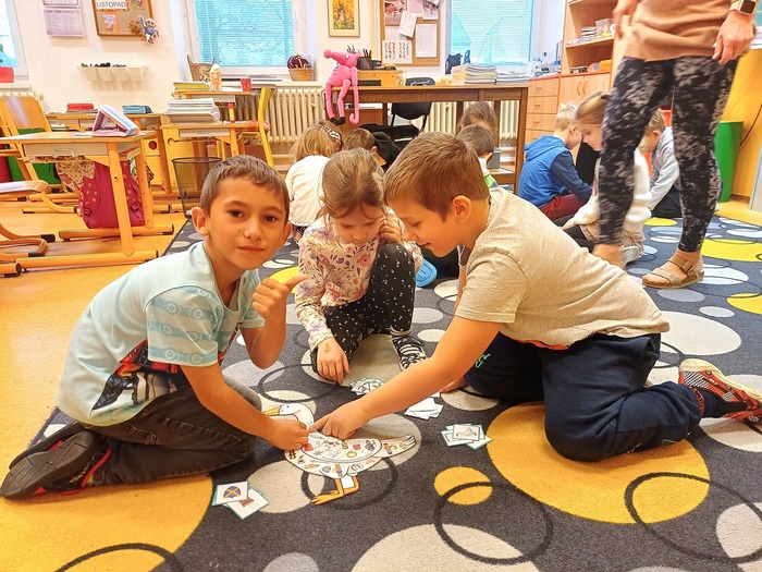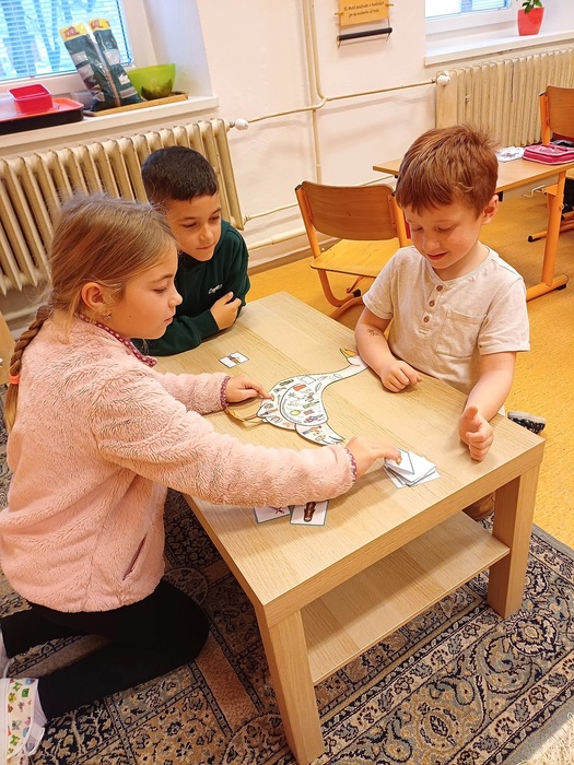 Děti skládaly obrázky podle posloupnosti a pracovaly v knížce na tematických pracovních listech. Po velké přestávce jsme se přesunuli do kuchyňky, kde si děti vyzkoušely přípravu svatomartinských rohlíčků. Na závěr jsme vyráběli papírové koně, aby si každý mohl odnést malý symbol Martina na bílém koni. Děti si den užily a odnesly si spoustu zážitků i nových poznatků o tradicích.