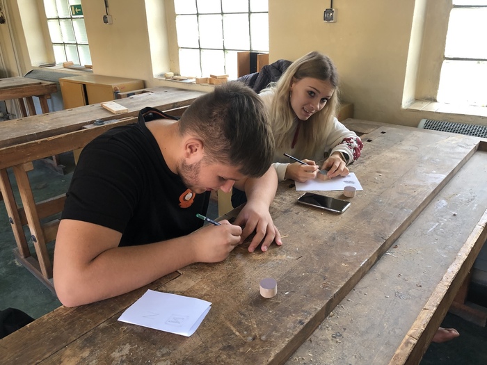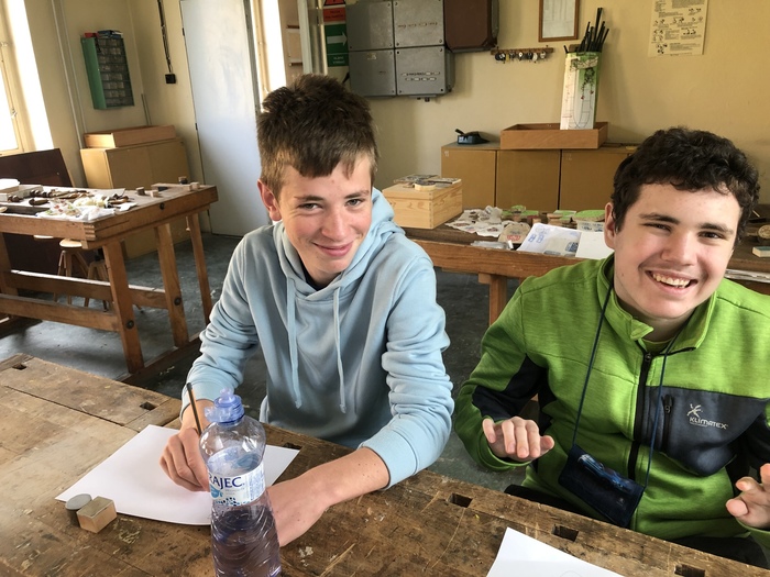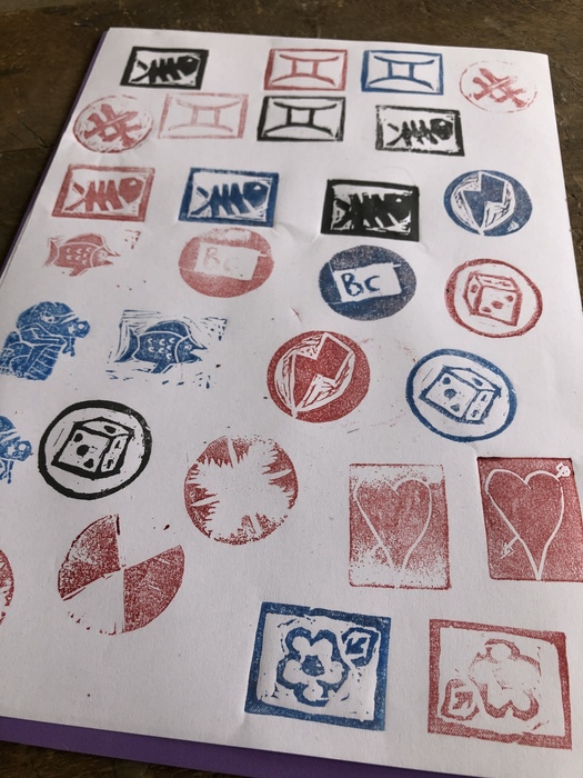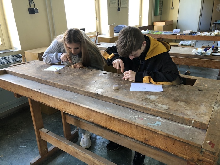Dnešní vyučování probíhalo převážně v dílnách. Žáci deváté třídy se zúčastnili výroby razítek. Se zapojením kreativity vyřezávali do razniček motivy, dle vlastního výběru. Vznikla tak razítka s různými symboly a znaky. Deváťákům se razítka velmi povedla.