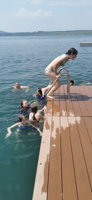 Letošní školní výlet se sedmičkou se nám náramně vydařil. První den jsme strávili u jezera Most. Voda byla teplá a čistá, slunce svítilo, vál čerstvý vítr, prostě krásné celodenní koupání. Od jezera jsme se vrátili na večeři do Lenešic, kde jsme večer na zahradě školy opekli buřty a hráli míčové hry. Na noc jsme se přesunuli do školy, kde jsme přespávali. Čas jsme si zpestřili hrami, filmem a stezkou odvahy.