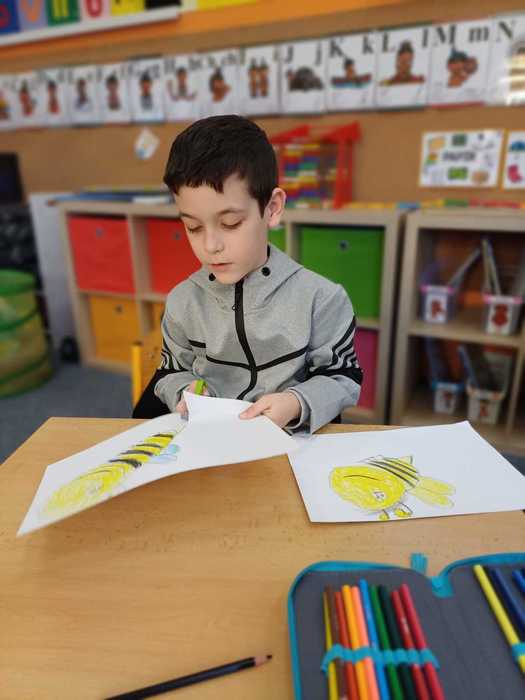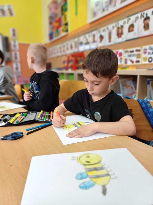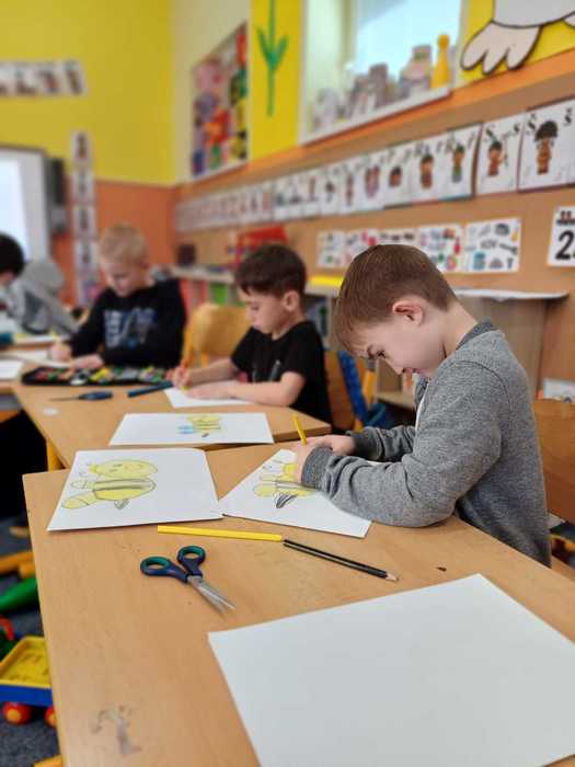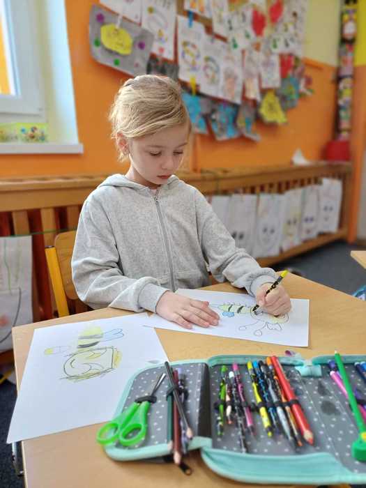 Naše přípravná třída se zapojila do výtvarné soutěže "O pohár včelky Máji", kterou připravil Celostátní spolek VČELÍ STRÁŽ. Každé dítě mělo za úkol namalovat včelku, a poté nalepit na plástve, což jsou desky, které včely používají k uchovávání larev, medu a pylu.