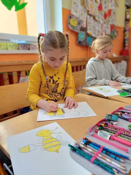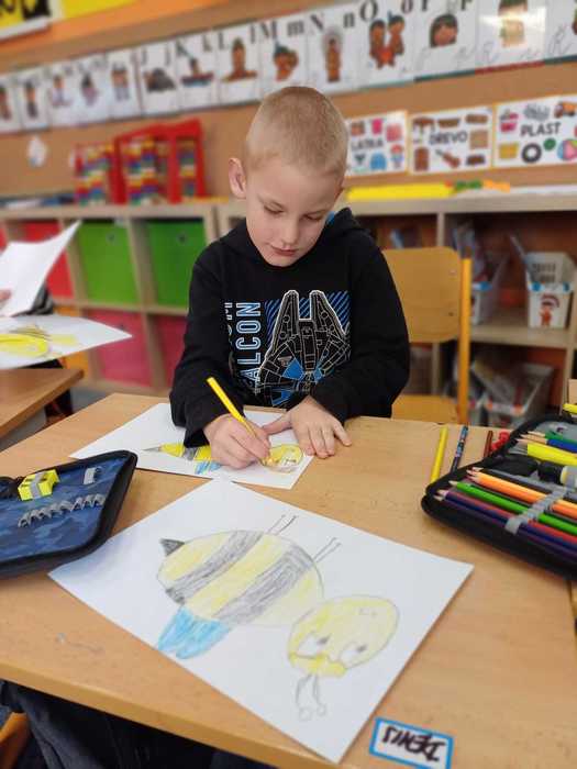 Naše přípravná třída se zapojila do výtvarné soutěže "O pohár včelky Máji", kterou připravil Celostátní spolek VČELÍ STRÁŽ. Každé dítě mělo za úkol namalovat včelku, a poté nalepit na plástve, což jsou desky, které včely používají k uchovávání larev, medu a pylu.
