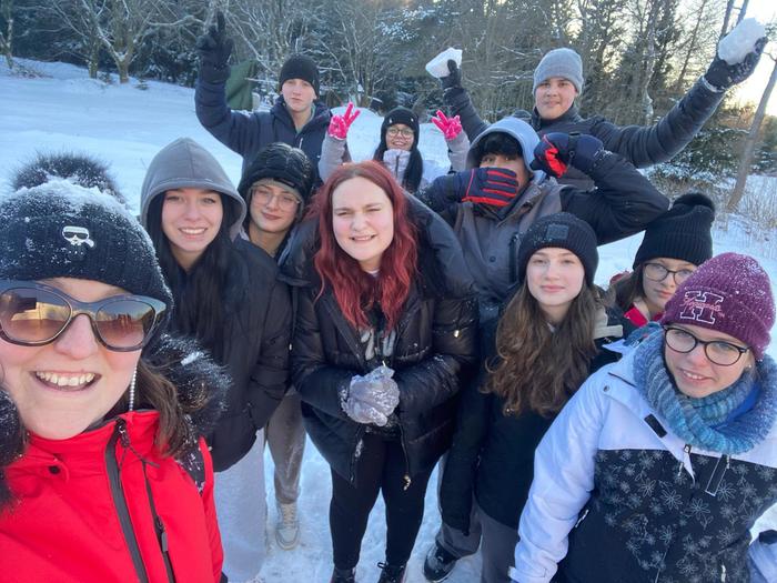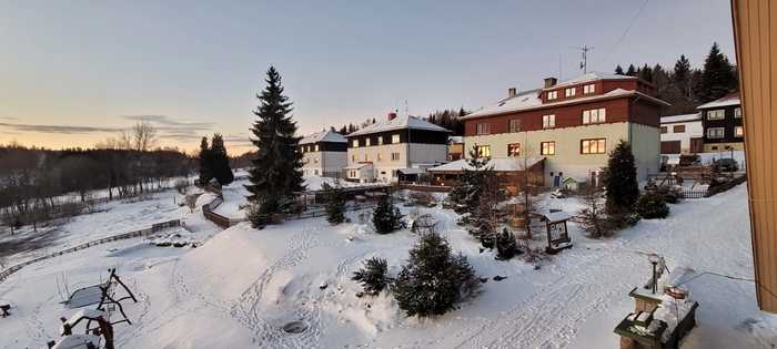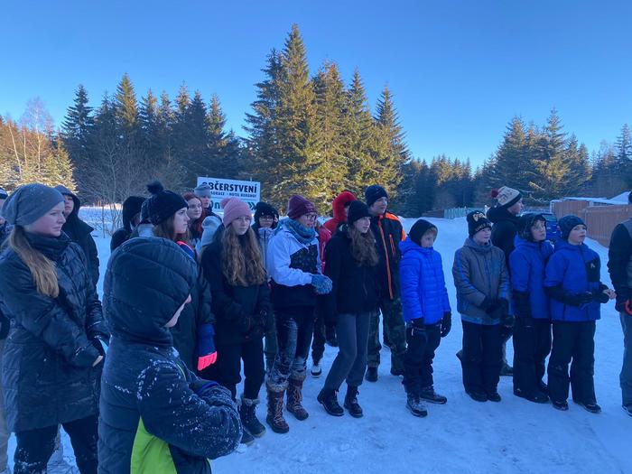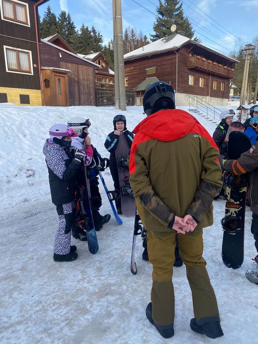 Nikdo z nás už nemohl dospat dnešního rána, jak moc jsme se všichni těšili. Snowboarďáci, lyžaři, instruktoři a tentokrát i naše víla zdravotnice. Je sobota 20.ledna a celá naše banda, a že nás letos jede opravdu hodně, nastupuje do červeného autobusu, který nás odveze za zimním dobrodružstvím na Nové Město nad Jáchymovem. Cesta protkaná za okny sluníčkem uběhla rychle, dokonce máme štěstí, že nás červeňáček dovezl až před hotel a chatu, kde budeme ubytovaní a nemuseli jsme kufry a lyžařskou výzbroj nosit daleko. Rychle jsme se ubytovali a čekal nás první obídek a odpoledne na sněhu plné koulování a her. Večer potom oficiální zahájení výcvikového kurzu a také trošku toho volna na klábosení se spolužáky. Všichni se již nemůžeme dočkat až zítra nazujeme lyže a snowboardy.
