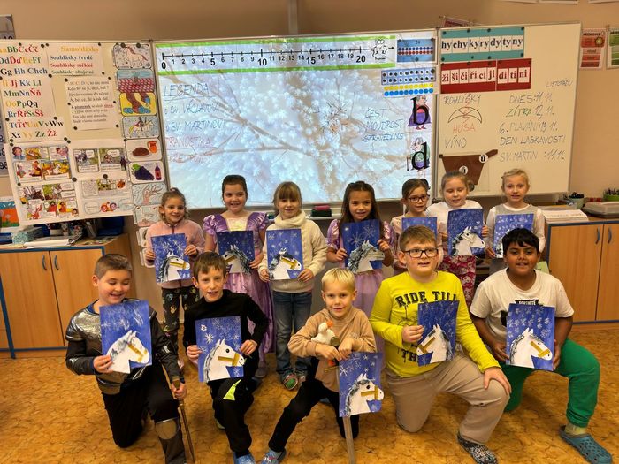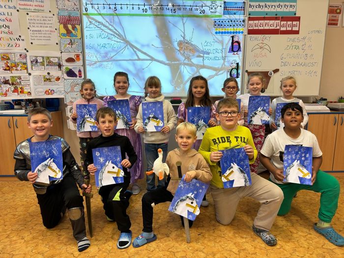 Druháčci v pondělí oslavili už druhý svátek svatého Martina. Vzpomínali, na legendu, se kterou se seznámili v první třídě, četli, objevovali nové informace, poznávali pranostiky, počítali, vyrobili Martinovi bílého koně a užili si svačinovou oslavu, při které se slavil nejen svátek Martina.