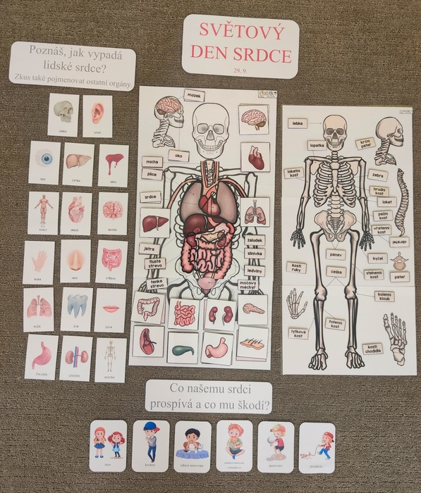 Světový den srdce je akce, která se koná od roku 2000 a je organizovaná každoročně světovou federací srdce a světovou zdravotnickou organizací. Ve školní družině jsme se s dětmi zaměřili na zdravý životní styl, první pomoc a skládání lidských orgánů a kostí. Díky pomůckám jsme nahlédli do lidského těla, naučili se masáž srdce a zjistili, co našemu srdci prospívá a co mu naopak škodí.