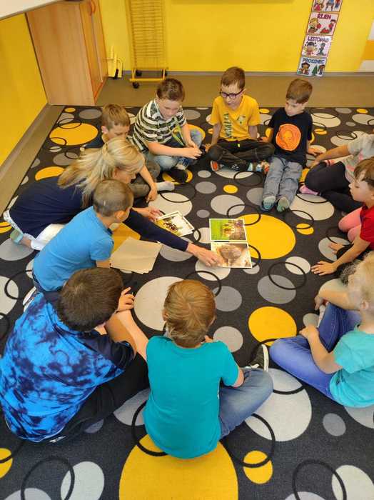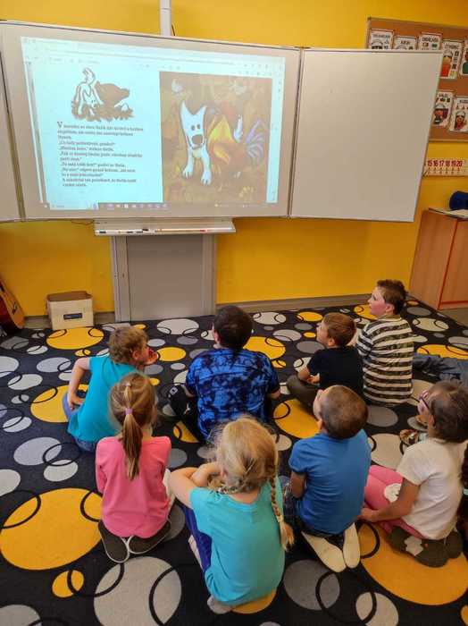 V 1. třídě proběhla minulý týden čtenářská lekce pod vedením p. uč. Tegtmajerové a p. uč. Pokutové. Pracovali jsme s knihou Hafíkova dobrodružství – Jak si hledal ženu. Na úvod měly děti podle obálky hádat, kdo bude hlavní postavou knihy. Poté hledaly po třídě schovaného pejska a v kruhu o něm každý řekl jednu větu. Při čtení knihy děti bedlivě poslouchaly a odpovídaly na zadané otázky. Po dočtení příběhu pak ve dvojicích sestavovaly zvířecí rodiny, které následně představily ostatním. Na závěr jsme celou  lekci společně zhodnotili - jak se nám kniha líbila, ale i jak se nám pracovalo.