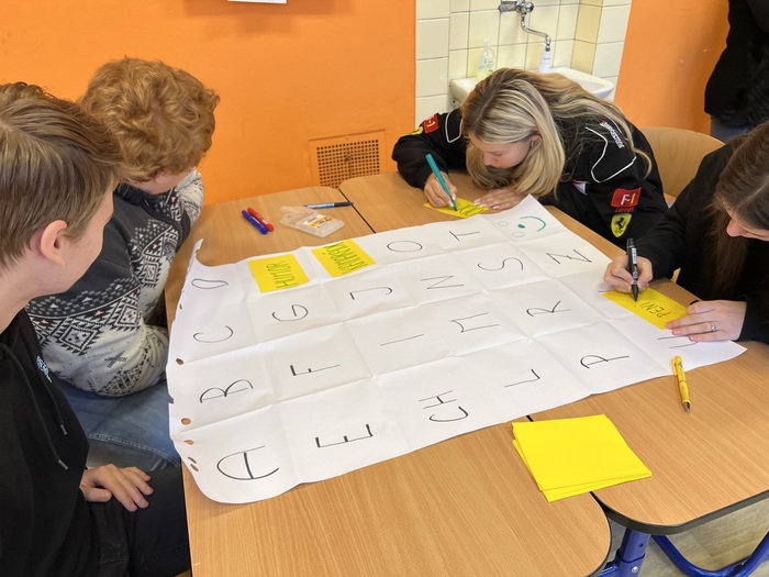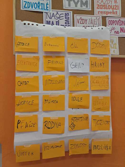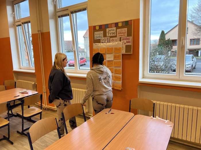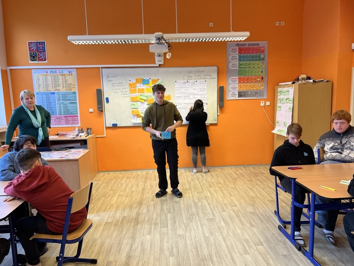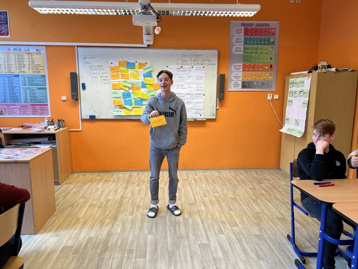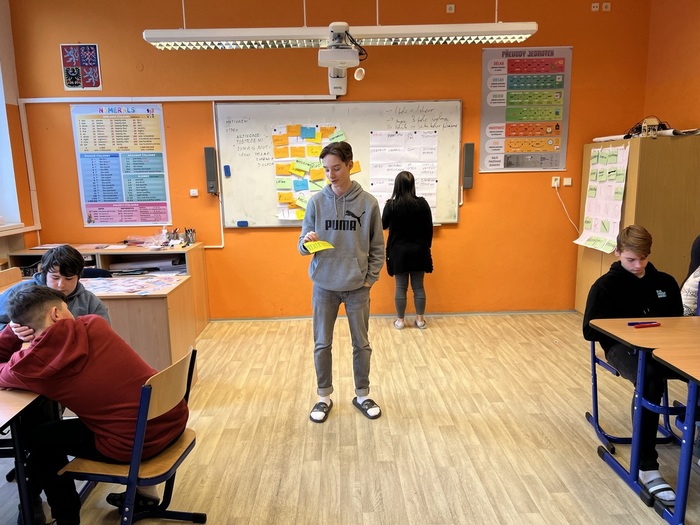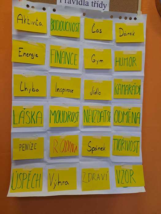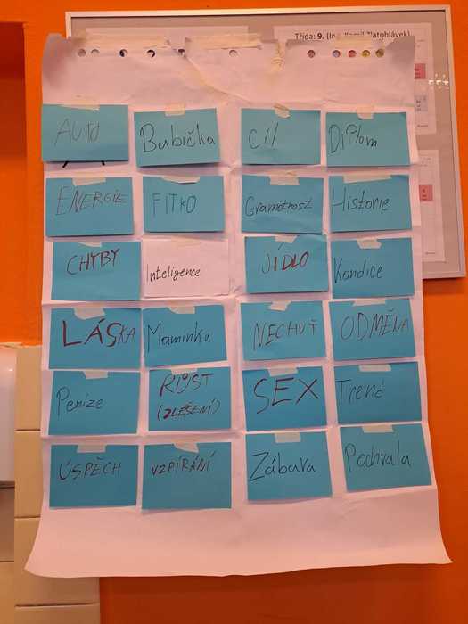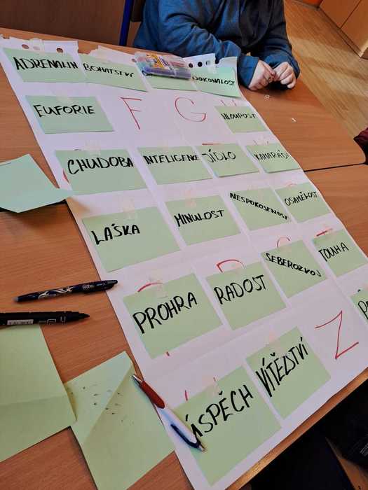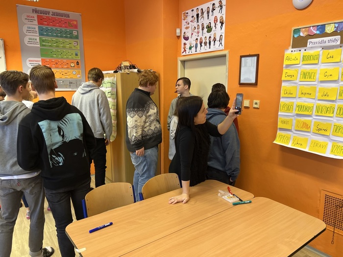 V deváté třídě proběhla tandemová výuka na téma MOTIVACE. Žáci nejprve popsali význam slova motivace, zhlédli video a seznámili se s Alfa boxem. Poté se rozdělili do čtyř skupin a společnými silami vymýšleli slova, která je mohou motivovat např. rodina, domov, odměna, inspirace, … Dále si z týmových nápadů vytvořili Alfa box třídy.