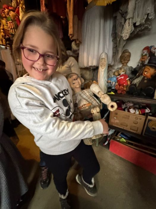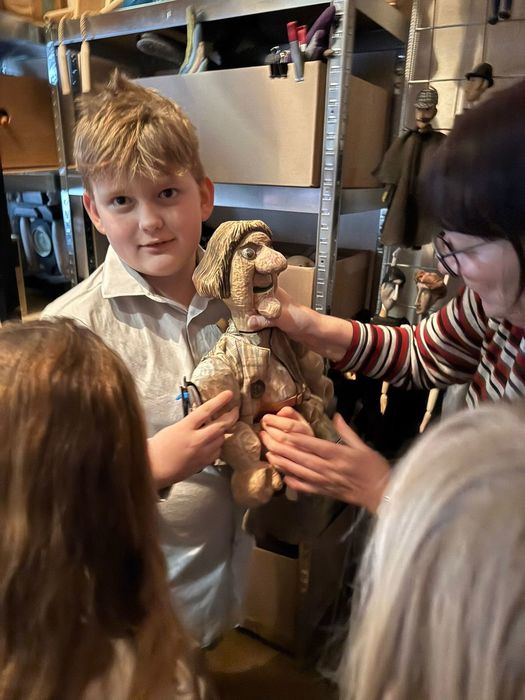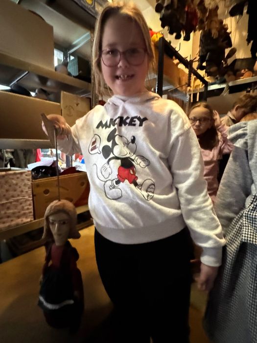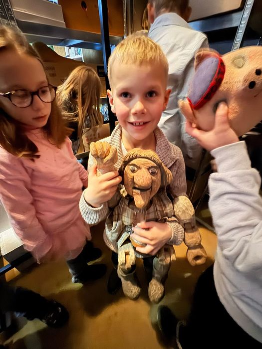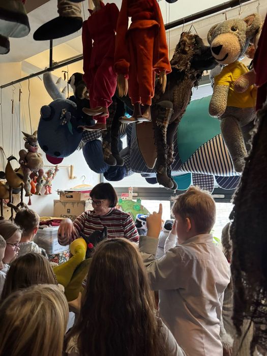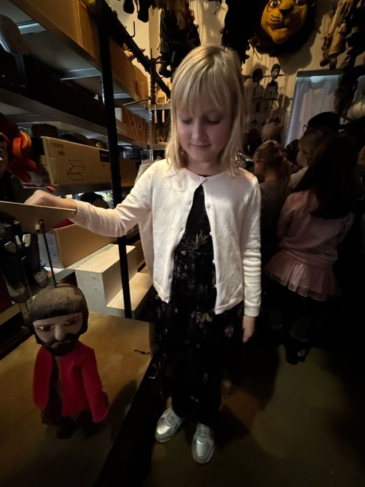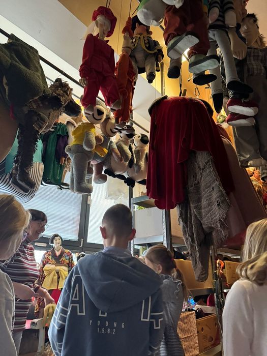 Navštívili kostymérnu, mohli pokládat otázky divadelní švadlence, prohlédnout si sklad loutek, kde dotýkání a vyzkoušení bylo povoleno ! Doporučeno bylo také nahlédnout k panu zvukaři a do zákulisí jeviště. Zažít divadlo po divadle si děti moc pochvalovaly.