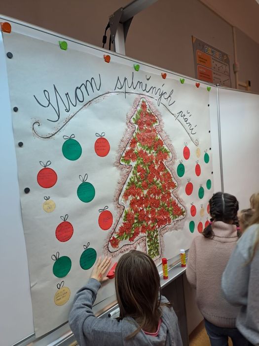 K vánočnímu stromu měli za úkol vymyslet přání, nesměla to být ale žádná věc. A co vymysleli? Přijďte se podívat, jste srdečně zváni. Náš strom přání je vystaven ve vestibulu na 1. stupni.