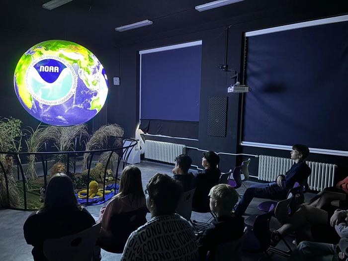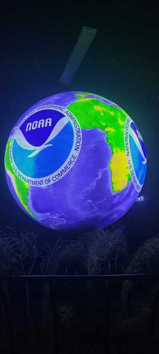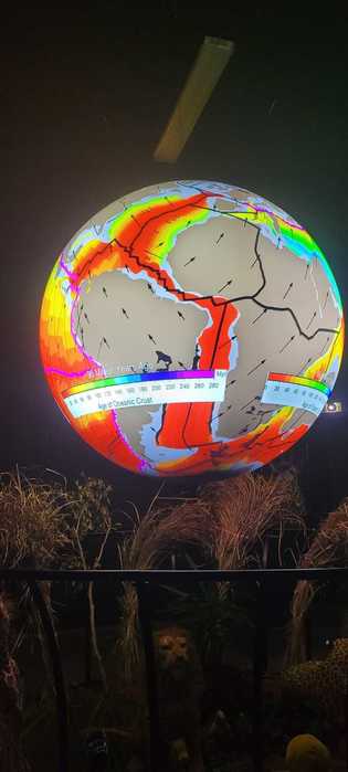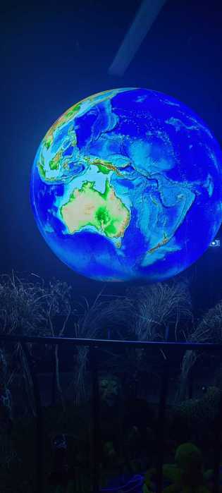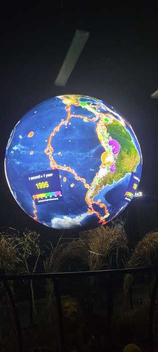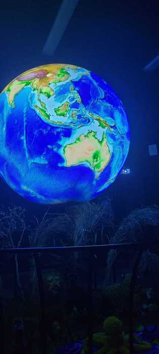 Atraktivní expozice je zajímavá nejen po vizuální, ale především po informační stránce. Obraz vycházející z výsledků měření NOAA (Národní úřad pro oceán a atmosféru) je promítán na kulovou projekční plochu o průměru téměř dva metry. Kouli lze obcházet, a přirozeně tak sledovat situace v různých částech planety. Na ploše glóbusu lze mimo jiné prezentovat atmosféru Země, oceány nebo simulace různých událostí. Znovu jsme si mohli zopakovat jak vzniká zemětřesení a sopečná činnost, sami si zkusit zápis na přístroji, který zaznamenává sílu zemětřesení, na Seismografu.