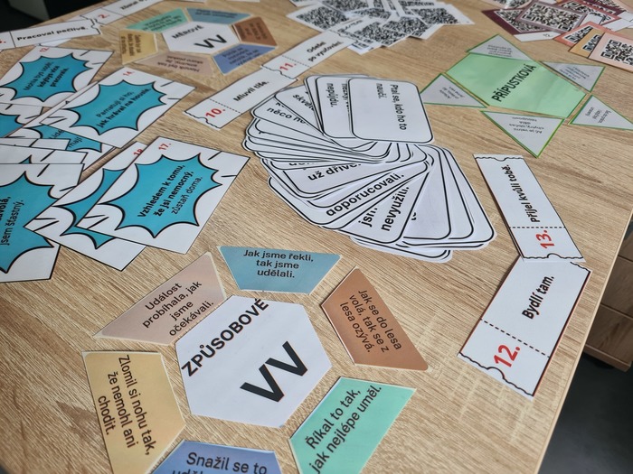 Protože...znáte něco horšího než určování druhů vedlejších vět? My sice ano. Třeba test z chemie v pátek poslední hodinu. Ale určování vedlejších vět je hned v závěsu. A tak to v osmé třídě teď žije. Skutečně nemluvíme o školním výletě nebo obědovém boji o poslední řízek v jídelně. Řeč je právě o vedlejších větách – konkrétně o osmi příslovečných. 8, slovem OSM, způsobů, jak může být věta vedlejší podřízena té hlavní. Dovede si představit tu jízdu? Když se na vás z věty vyvalí místo, čas, způsob, míra, příčina, účel, podmínka a přípustka, je to skoro jako jazyková verze únikové hry. Proto jsem se rozhodla, že to osmákům trochu zpříjemním. Poněvadž co si budeme povídat – výklad a dril jsou sice fajn, ale bez špetky zábavy a pohybu to prostě není ono. A tak: